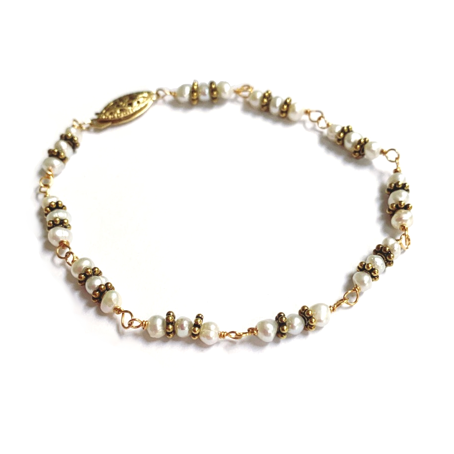 Gold freshwater pearl antique style wedding bracelet