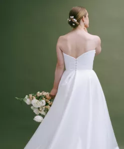 These delicate wedding flower hair pins for buns can be bent to the shape of your head and into whatever hair style you’ve chosen.