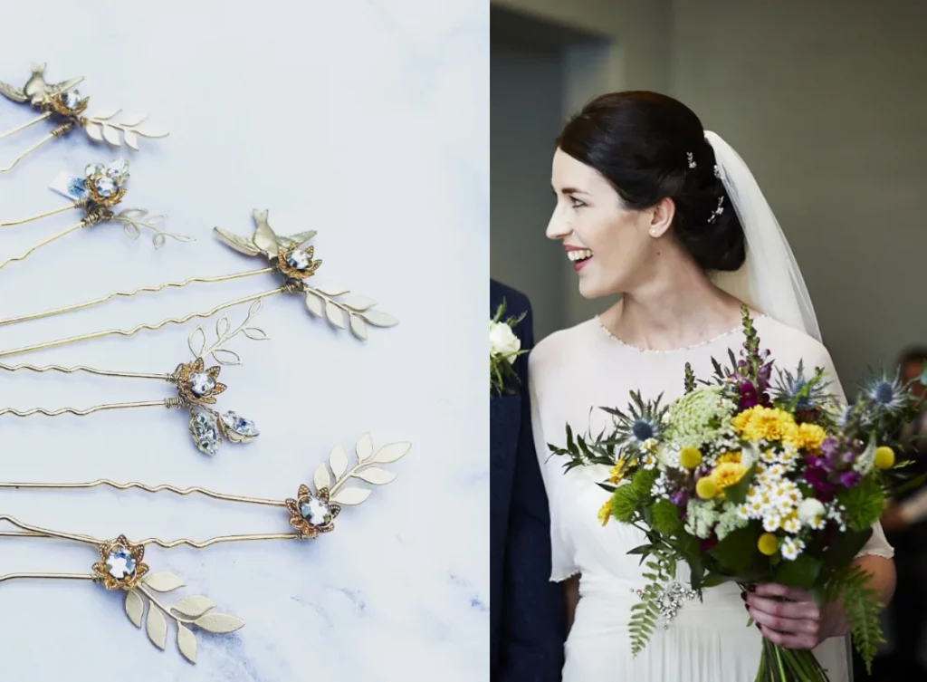 You don’t have to go all out with a Downton style tiara. You can echo the look with your dress, and hair style, and decorate with a dash of Art Nouveau hair pins, like Dawn Chorus . They are understated and beautiful with a ‘less is more’ feel to them.
